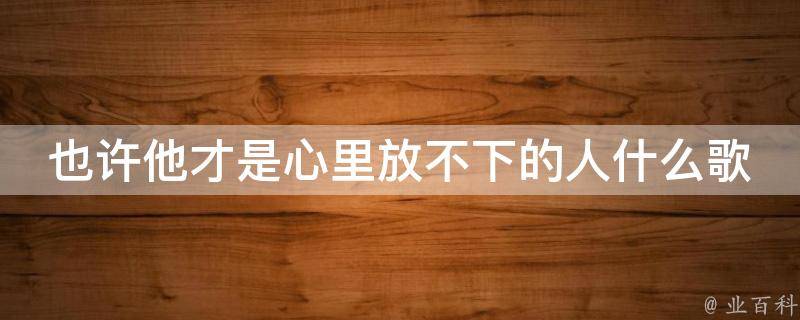 最佳答案也许他才是心里放不下的人是歌曲:《她才是你想过的余生》。这是由十二兄组词、罗旭阳作曲、大美演唱的一首抒情歌曲。部分歌词是:也许她才是你心里最放不下的人,也许她才是你想过的余生,也许曾经的我们就不应该认真,也许就不会痛着转身。