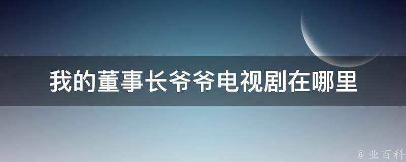 最佳答案我的董事长爷爷电视剧在腾讯视频看。《三分野》电视剧中女主的爷爷是董事长,于2023年5月22日在腾讯视频播出。该句讲述了两位独立坚强、勇敢拼搏的男女在东和集团大小姐向园的历练之旅中,共同实现中国北斗导航研究的梦想。