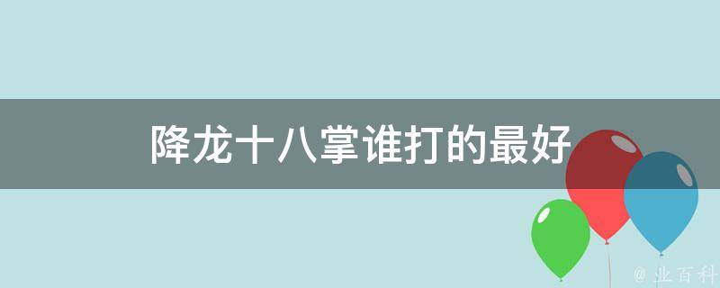 最佳答案降龙十八掌萧峰、洪七公、郭靖打的最好。降龙十八掌原来有二十八掌,北宋年间经萧峰与其义弟增删后,改为十八掌,劲力更胜从前,其后一直流传到了洪七公、郭靖手里,成为丐帮绝学,成为武林第一掌法,纵观金庸众多作品,若论降龙十八掌的造诣,基本以萧峰、洪七公、郭靖三人最佳。
