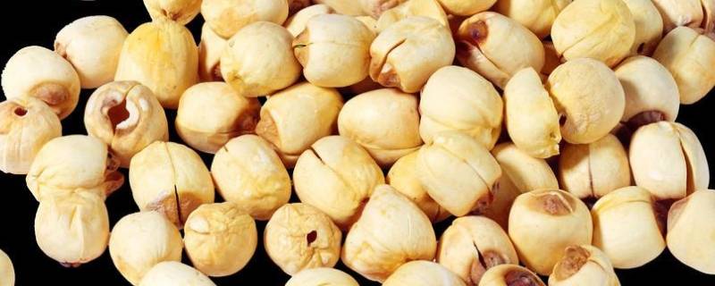 因为莲子表皮有一层角质,并随着贮存时间延长而日益增厚,故不容易吸水膨胀。用热碱水浸泡,比例为碱一水十,碱溶解后,莲子泡一小时左右,用手揉捏莲子,表皮脱落,再放入热水中浸泡,莲子肉膨胀了,随后一煮即烂。