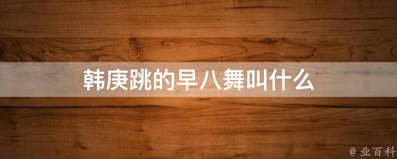 最佳答案韩庚跳的早八舞叫《sorry,sorry》。在综艺《你好,星期六》的舞蹈复刻环节,何炅团队表演了职场八段锦,韩庚团队表演了早八舞,全员齐跳《sorry,sorry》。《Sorry, Sorry》是韩国男子组合Super Junior的第三张专辑,韩庚曾经是Super Junior的成员。