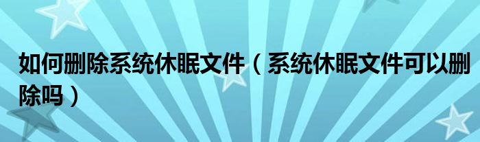 如何删除系统休眠文件(系统休眠文件可以删除吗)