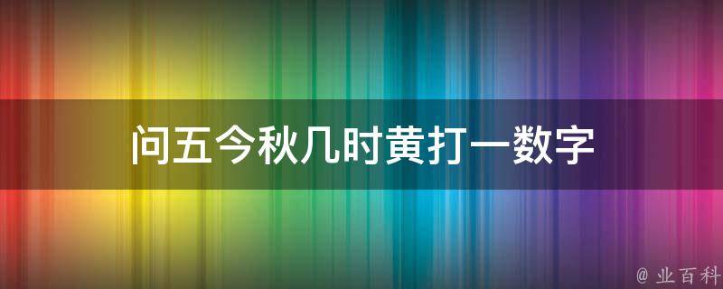 问五今秋几时黄打一数字是8。秋季共有三个月时间,其中最具代表性的是中秋8月,因此是8。由于8的谐音与汉字发的读音很像,因此在中国8也有被译作发财、发达、富贵的意思,所以一些带8的车牌、手机号很珍贵。