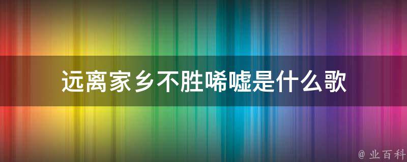 最佳答案远离家乡不胜唏嘘是歌曲《落叶归根》。《落叶归根》是王力宏演唱的一首歌曲,由王力宏作词、作曲,吴庆隆编曲,收录在王力宏2007年7月23日发行的专辑《改变自己》中。歌词节选:喔,远离家乡,不胜唏嘘,幻化成秋夜,而我却像落叶归根,坠在你心间。
