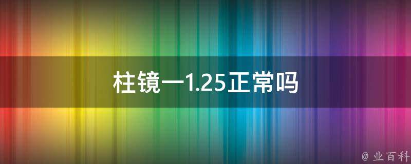 柱镜-1.25不正常。视力检查柱镜-1.25通常是指125度的近视散光。通常125度散光并不严重,属于轻度散光,对人体影响不大。然而125度散光会影响视力和视觉质量,可以通过矫正视力、手术治疗等缓解眼部疲劳。