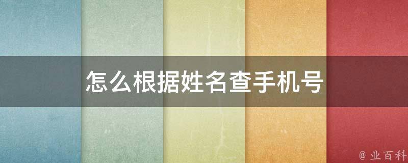 怎么根据姓名查手机号