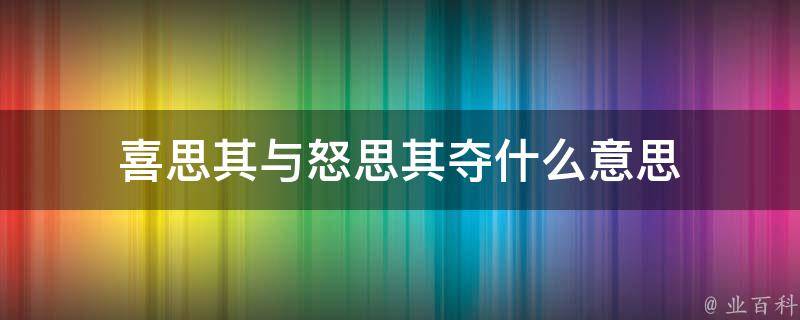 喜思其与怒思其夺什么意思
