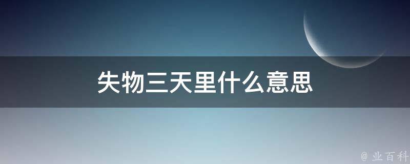 失物三天里是指丢失的东西、遗失的财物在丢失之后的三天内是找回失物的最佳时机。这个概念强调了积极行动和态度的重要性,以找回丢失的物品或找到更好的替代品。