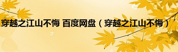 穿越之江山不悔百度网盘(穿越之江山不悔)
