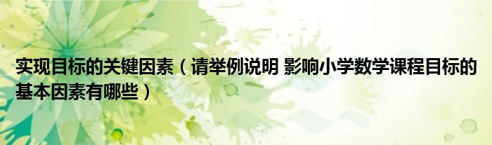 大家好,小联来为大家解答以上的问题。实现目标的关键因素,请举例说明 影响小学数学课程目标的基本因素有哪些这个很多人还不知道,现在让我们一起来看看吧!