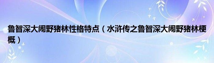 鲁智深大闹野猪林性格特点(水浒传之鲁智深大闹野猪林梗概)
