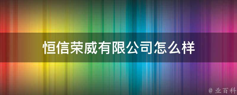 恒信荣威有限公司怎么样