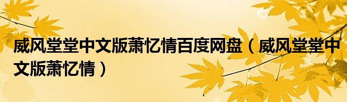 威风堂堂中文版萧忆情百度网盘(威风堂堂中文版萧忆情)