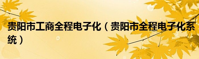 贵阳市工商全程电子化(贵阳市全程电子化系统)