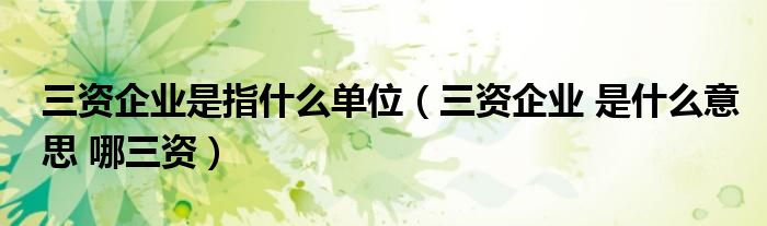 三资企业是指什么单位(三资企业是什么意思哪三资)