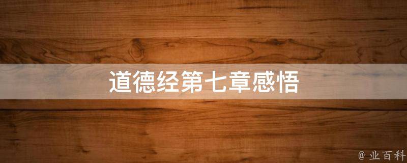 道德经第七章感悟
