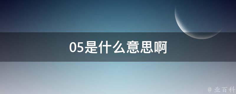 05代表自由、不被束缚、有创造性的数字,毕达格拉斯派将5视做最神圣的宇宙数字,是融合了2和3的法则,5的诞生也代表着突破数字4的诸多限制,从衣食安全上升为寻找心的方向。在网络用语中,05的汉字拼音谐音十分的明显就是念我,也就是表达了希望自己最心爱的人来想念着自己。