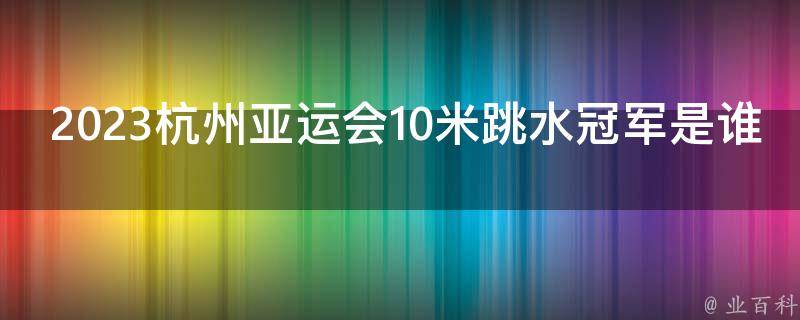 2023杭州亚运会10米跳水冠军是谁