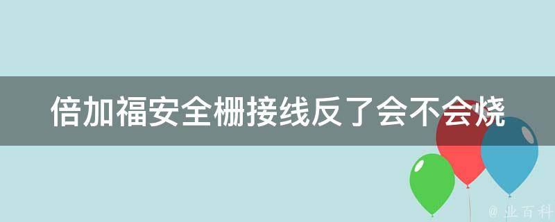 倍加福安全栅接线反了不会烧。倍加福安全栅的接线反了可能会导致设备无法正常工作,但通常不会烧毁设备。不过,在接线时需要格外小心,因为错误的接线可能会引起电路故障或产生安全隐患。