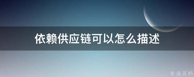 依赖供应链可以描述为:供应链是相互依赖的,任何一个环节的变动都会对整个供应链产生影响。供应链的依赖性也意味着各环节之间的信息透明度和沟通的重要性。只有保持信息的畅通和共享,才能确保供应链的高效运作。