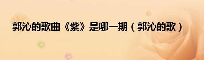 郭沁的歌曲《紫》是哪一期(郭沁的歌)