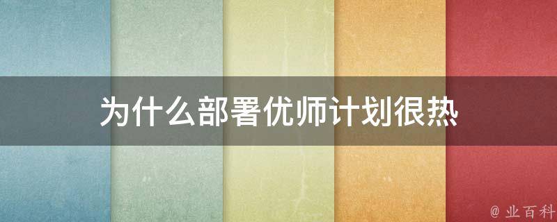 最佳答案1、优师计划旨在推动基础教育高质量发展,特别是为中西部欠发达地区定向培养优秀教师,这些地区是脱贫攻坚和乡村振兴的主战场,而优秀教师则是扎根当地巩固成果助力实现乡村教育振兴源源不断的生力军和关键性力量。这符合国家对于乡村教育的重视以及对于人才战略的布局。2、优师计划采取招生+培养的...