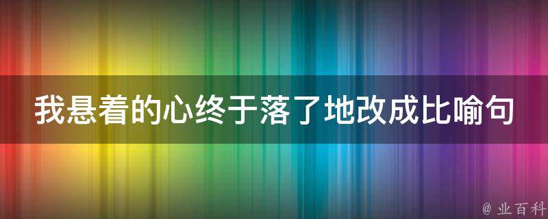 最佳答案我悬着的心终于落了地改成比喻句是我悬着的心终于像一块石头落了地。因为有了喻体石头,这句话就变成了一个比喻句。比喻句是一种常用修辞手法,意思是打比方,用浅显、具体、生动的事物来代替抽象、难理解的事物。