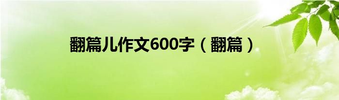 大家好,我是小科,我来为大家解答以上问题。翻篇儿作文600字,翻篇很多人还不知道,现在让我们一起来看看吧!