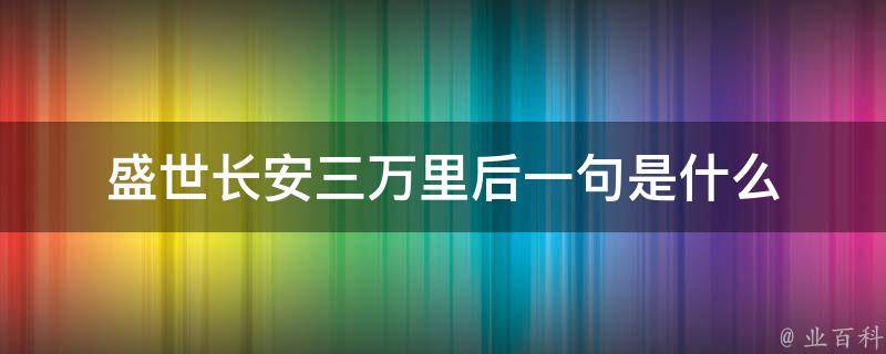盛世长安三万里后一句是:大唐繁华耀光辉。盛世长安三万里是形容某个地方或某个时期的繁荣和盛世。长安是唐朝的都城,也是当时世界上最繁华的城市之一。三万里是一个修辞手法,表示长安的繁荣超越了三万里的范围,意味着其繁华程度之大。