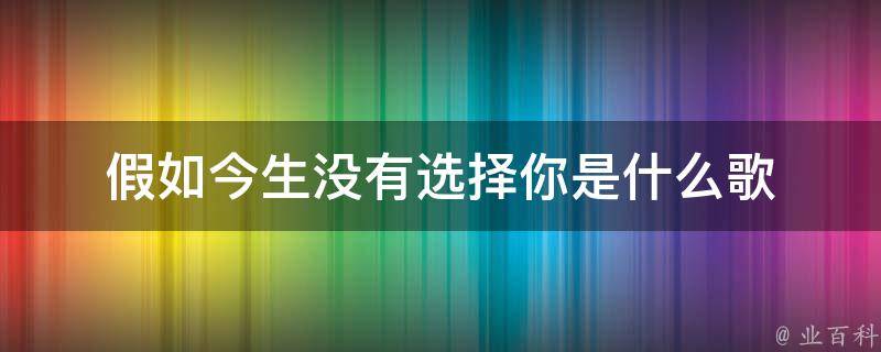 假如今生没有选择你是歌曲《九十九种回忆的痛》,是魏佳艺演唱的歌曲,由肖汉博作词作曲,发行于2023年12月7日。部分歌词:假如今生没有遇见你,假如没有和你在一起,是不是平静的心,不会因为你,被伤的如此彻底,假如今生没有选择你,假如对你没那么痴迷,不把你当成唯一,刻在我心里,就不会泪流在夜里。