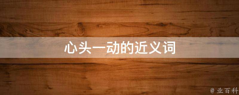 最佳答案心头一动的近义词:心头微动、心动不已、灵机一动。心头一动的意思是突然有某种想法或感觉在心头涌起,比如突然有灵感或者受到了某种启发。心头一动可以用在很多地方,比如遇到困难、不知道如何选择时,突然心中一动想到了解决办法,或者心中一动觉得某条路是对的。