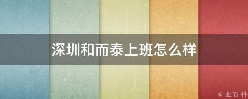 最佳答案深圳和而泰是一家专注于智能控制器领域的企业,具有自主研发能力、自主知识产权和核心技术的企业。在深圳和而泰上班,员工的工作环境和氛围都比较好,公司有专门的研发中心和实验室,为员工提供了良好的工作环境和条件。