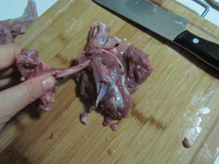 1、将野兔泡上一天,当血水泡出后要不停的换水。