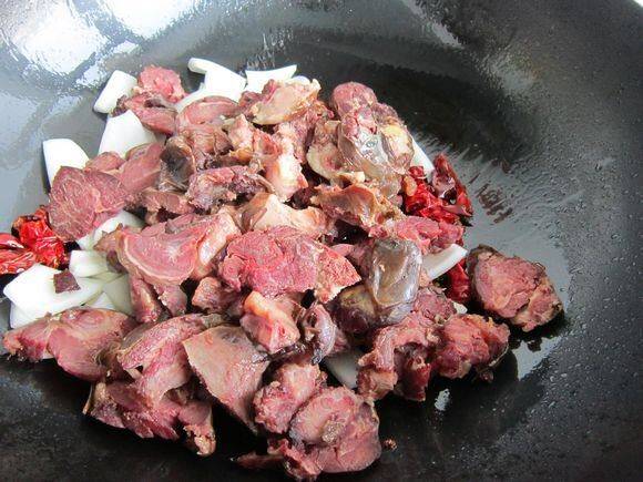1、食材:熏马肠、洋葱、青辣椒、辣皮子、花椒粒、酱油、植物油、鸡精。