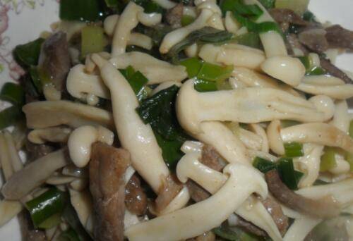 最佳答案食材:金福菇半斤、瘦肉一两、葱叶适量、油盐适量。1.先将金福菇洗一洗。2.捞出控水分,用手撕成两半。3.将瘦肉切成条。4.将葱花切成圈。5.热锅,倒入花生油加热,放肉丝煸炒。6.肉变色后,放葱花炒一会。7.放金福菇,加盐,翻炒至熟。8.出锅装盘就可以了。