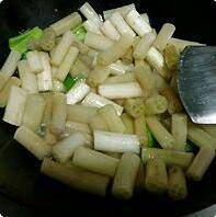 加入莲藕梗大火翻炒,出锅前洒盐。
