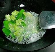 锅里放少许油,先爆香青椒。