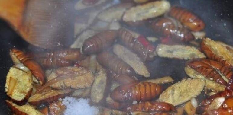 材料:蚕蛹200g、油适量、盐适量、花椒大料适量、干红椒适量、香菜适量、葱姜蒜适量、酱油适量、糖适量。