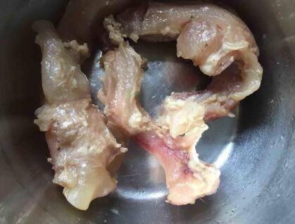 将炖好的牛蹄筋切碎。