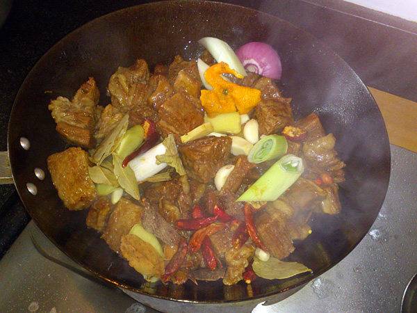 4、放入刚才焯水后的牛肉。