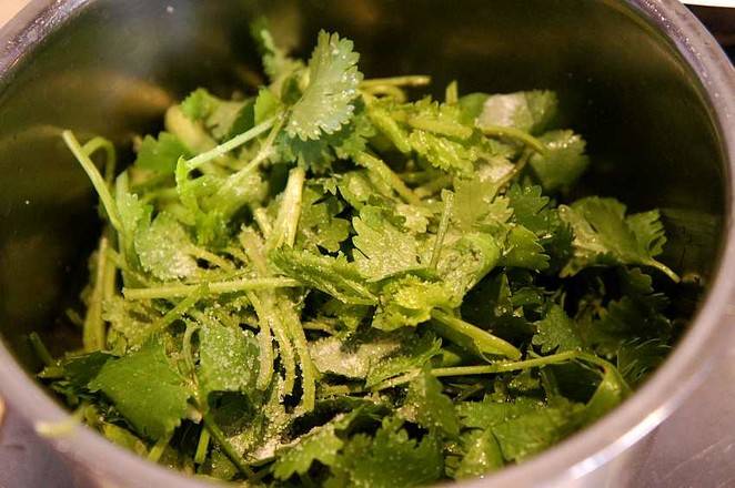 2、香菜摘洗干净,控净水分,胡萝卜去皮洗净,大蒜去皮洗净。