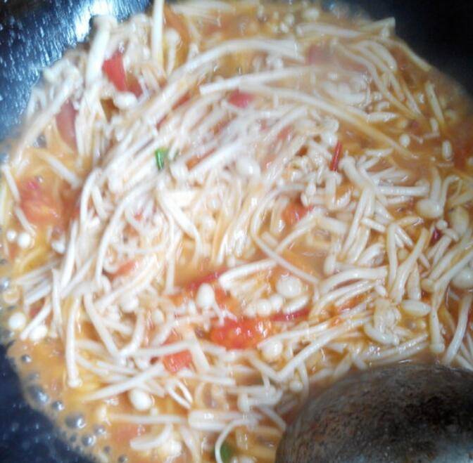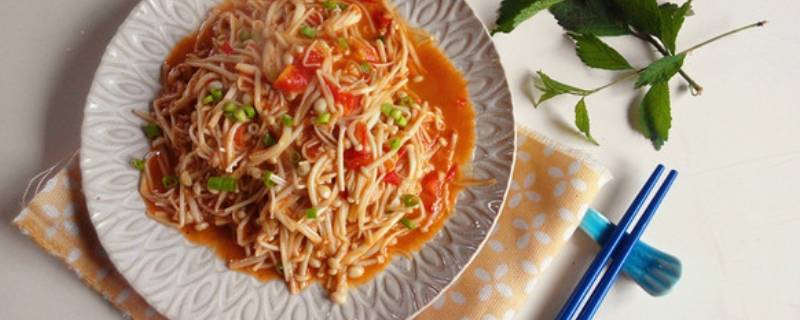最佳答案用料:金针菇250克、西红柿1个、植物油2汤匙、大蒜3瓣、食盐3克、小葱1棵。1.食材备齐。2.金针菇去根,用手撕开,西红柿切丁,蒜切末。3.锅加油烧热,下入蒜末小火炒出蒜香味。4.下入西红柿丁翻炒1-2分钟。5.下入金针菇、盐,翻炒至金针菇变软,加入葱花翻炒均匀即可盛出装盘。