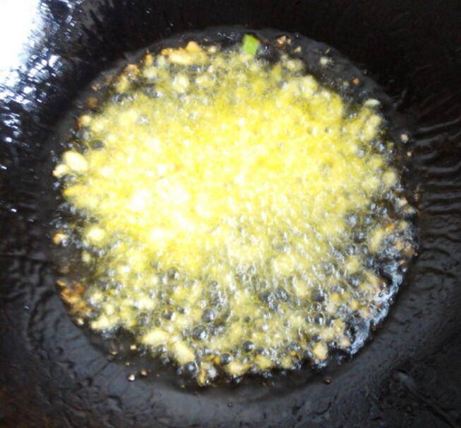 3.锅加油烧热,下入蒜末小火炒出蒜香味。