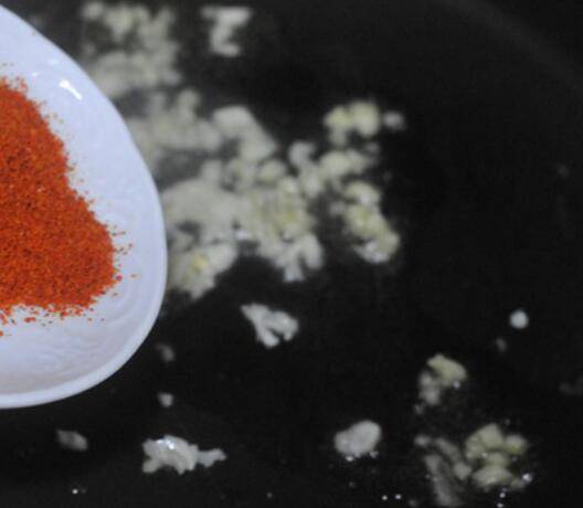 3.锅里加油,先将姜蒜末下锅煸炒出香味。