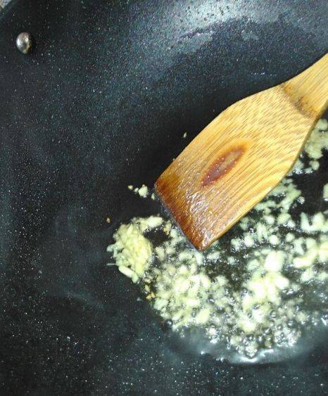 5、把蒜泥放下去爆香。