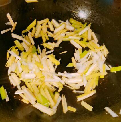 2、带皮牛肉切片,大蒜叶斜刀切寸段,姜片准备好。
