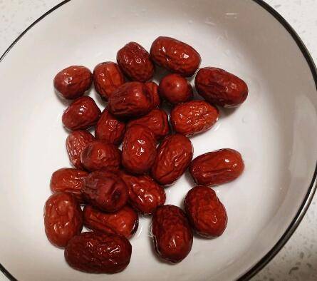 2、准备泡好的红枣备用。
