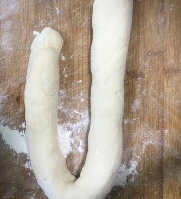 4、把面团拿出来继续揉,要把面团里面的空气排尽,馒头口感劲道的方法就是要多揉,揉好的面团分成小块,揉成形状。