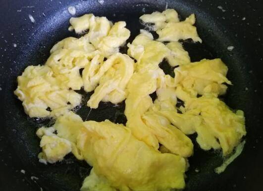 7、把炒好的鸡蛋倒进去,继续翻炒一下,让鸡蛋入味。