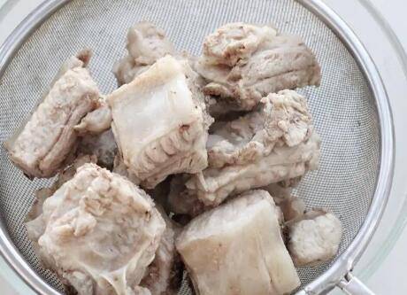 将排骨冷水下锅,大火煮沸后撇去表面浮沫。
